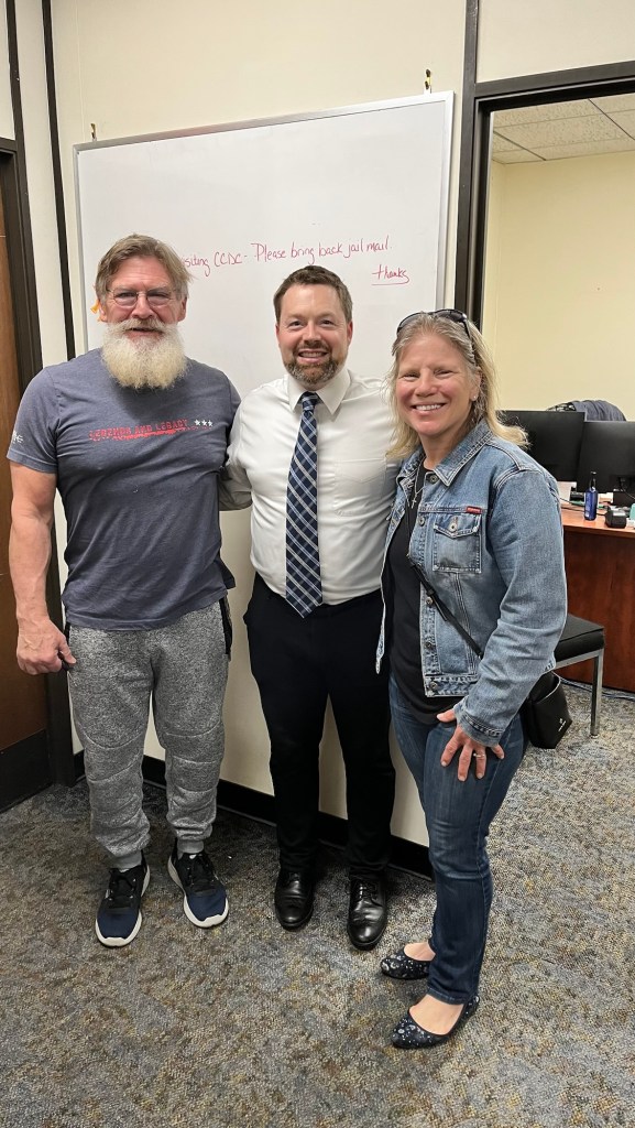 I have one photo to show today. It is a photo of me, my husband, and my son’s lawyer- the public defender from Cecil County, Maryland. His name is Jason Ricke. He defended our son, so that now he is not criminally responsible for his behavior during that awful psychotic episode two years ago. Because of Jason, our son will have the freedom to return home as long as his health allows. It will not be soon, but it will happen one day. We thank God for Jason. We thank God for our son’s doctors who understand schizophrenia and treat him compassionately and with understanding.